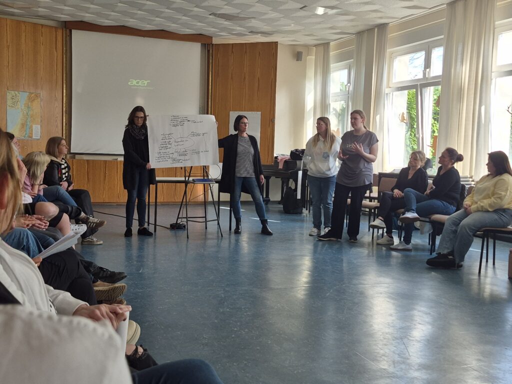 Das Team hatte Frauke Viehban über die Pädiko Akademie gebucht, die zum „Umgang mit herausforderndem Verhalten bei Kindern“ geschult hat.