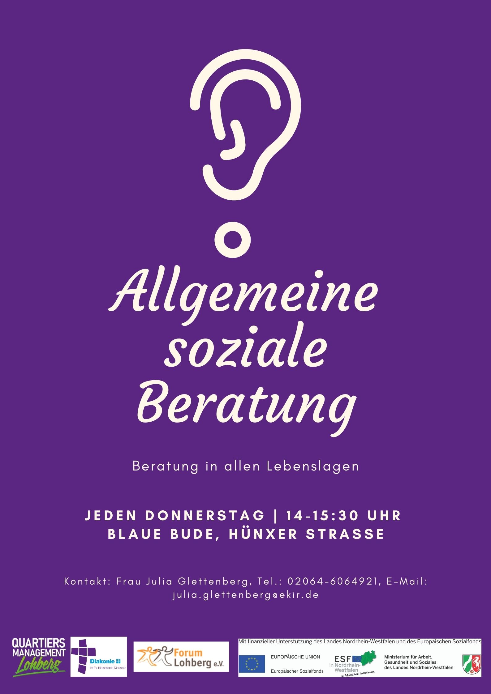 Die Allgemeine Soziale Beratung arbeitet anonym, kostenlos und unter Einhaltung der Schweigepflicht gemäß § 203 StGB.